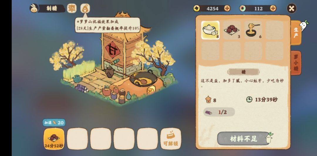 ①第一天选择再多一点配合上萝卜学舍和月卡加成可大幅增加产能,可以快速囤货。