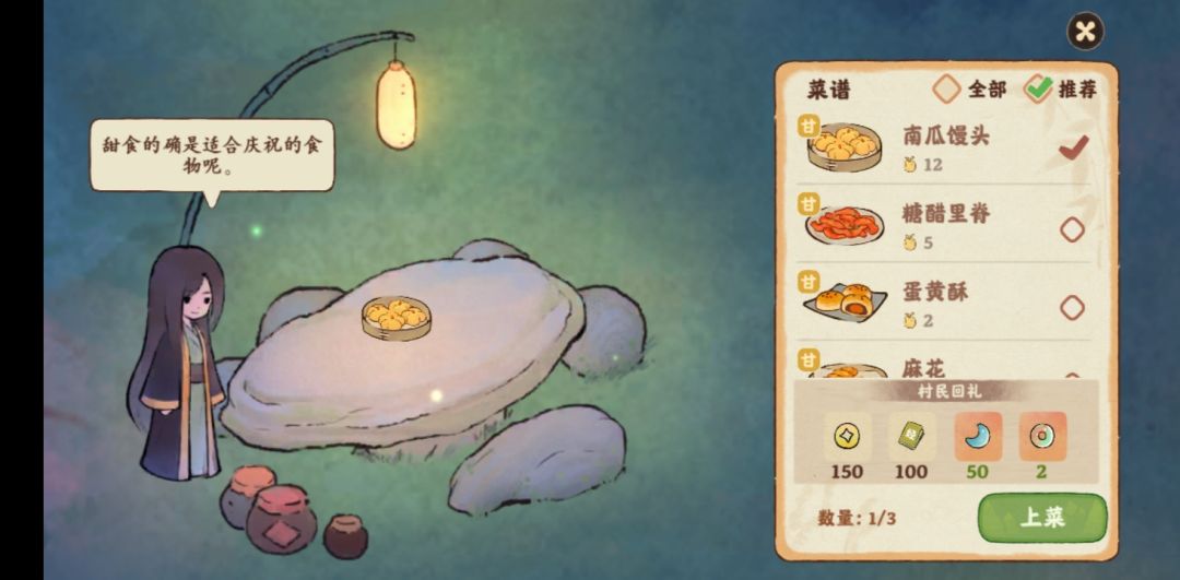 150/100梯度的菜为6级菜,如狮子头和南瓜馒头,较少且较为后期。