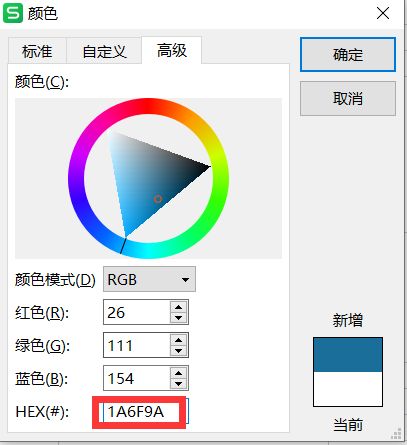 ------前6位数字可以从0-9和ABCDEF中取值。如:1A6F9A是这个颜色:
