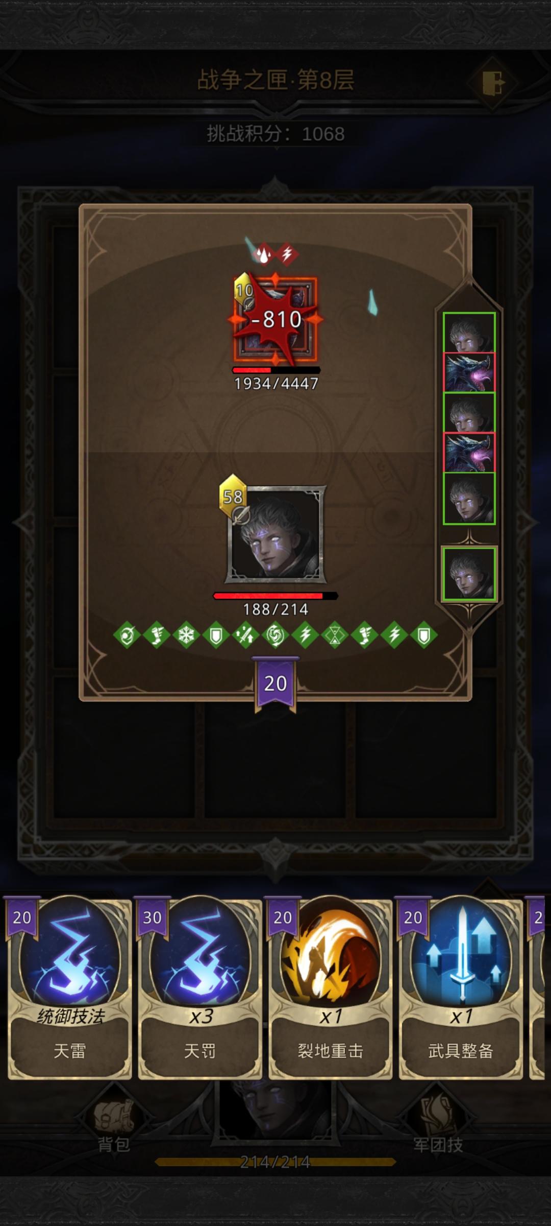 尽量清空五层及以前的所有事件 六七层看血量和军团技能 天罚伤害高尽量留到boss战