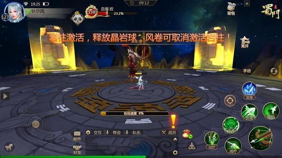 技能描述:血魔·岩对场内3门八卦阵(即图中场景的三环光圈)释放封印阵法,封印完成后生成阵眼光柱,颜色随机为红色或绿色。