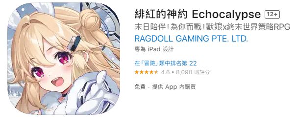 台服同理,到TW的苹果商店里去下载就可以了,搜索“緋紅的神約 Echocalypse”就可以了。(也可以参考安卓的下载方法)