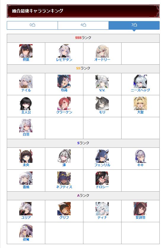 这是gamewith上的强度节奏榜,大家可以参考,详细的就要自己去看了
