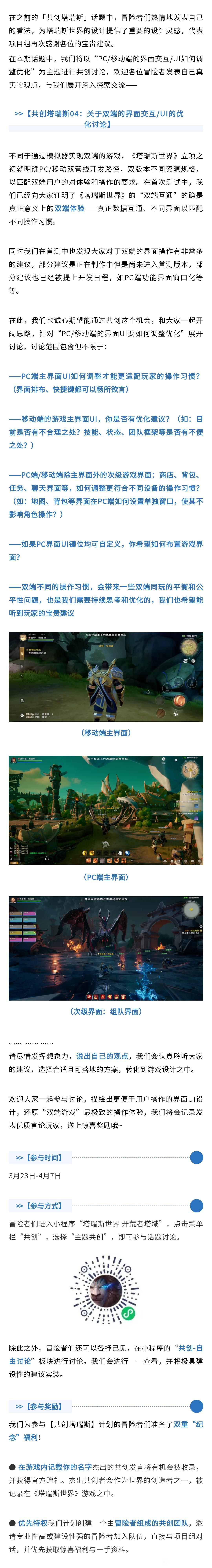 共创塔瑞斯04:关于双端的界面交互/UI的优化讨论