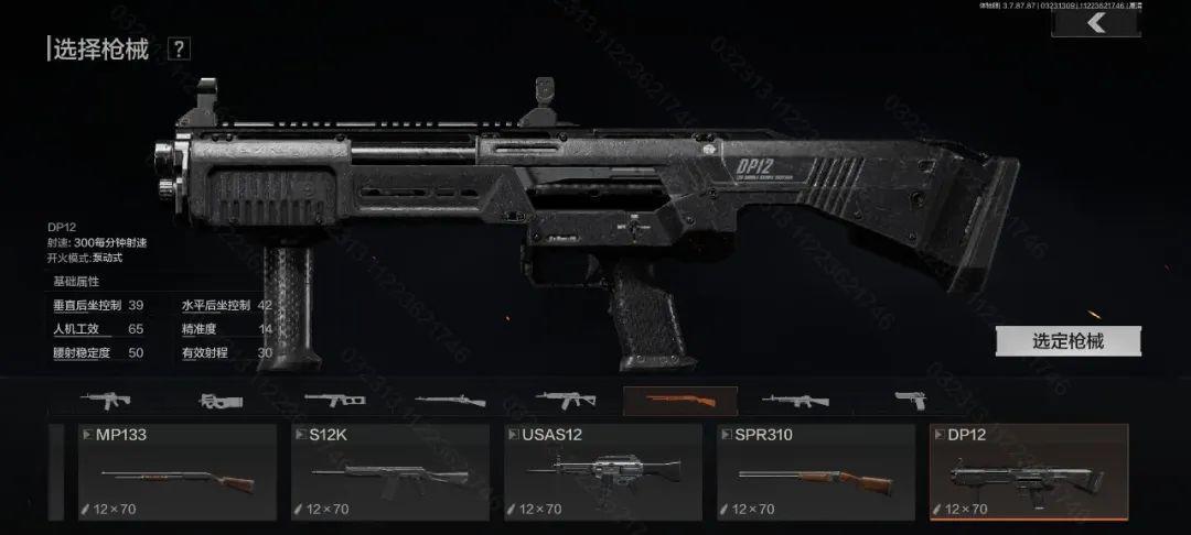 第三把是新型的泵动式霰弹枪DP12,它采用无托设计、结构紧凑,弹药由两根独立枪管供弹,可以支持短时间内双发射击,可以视为SPR310的升级版。不过由于没有弹匣供弹,只能手动单发装填,因此交战时最好不要将子弹倾泻一空,最好预留几发应对突发情况。