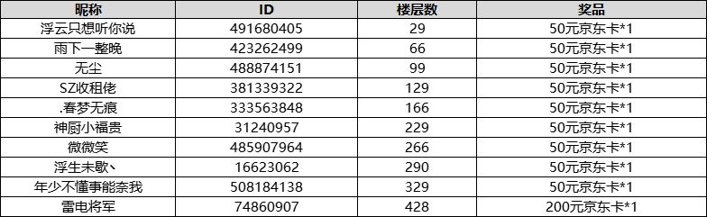 踩中以下特殊楼层的10名冒险者将可分别获得50元京东卡*1