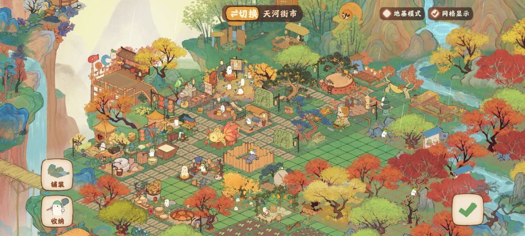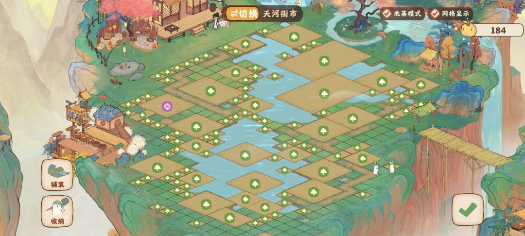 夜市我的思路是食物生产线+花灯+木竹生产线,后面是萝萝学院和游乐场。粮仓鸡圈放到农田区了打造田园生活了!