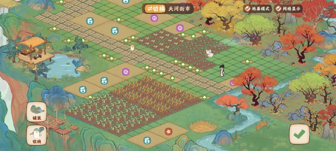 街市可以按自己顺手的生产线摆,田地换水田也很好看!(我开阔面积还不够)