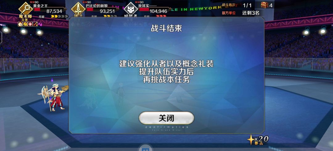 想着其实是嬴政的宝具跟c呆的宝具有一点冲突,嘲讽➕无敌之后就没必要开c呆的宝具救命了,但其实还好,只是因为白值伤害不够的缘故最终推到c闪出来的时候,全员基本上残血了,最后嬴政单挑没打过