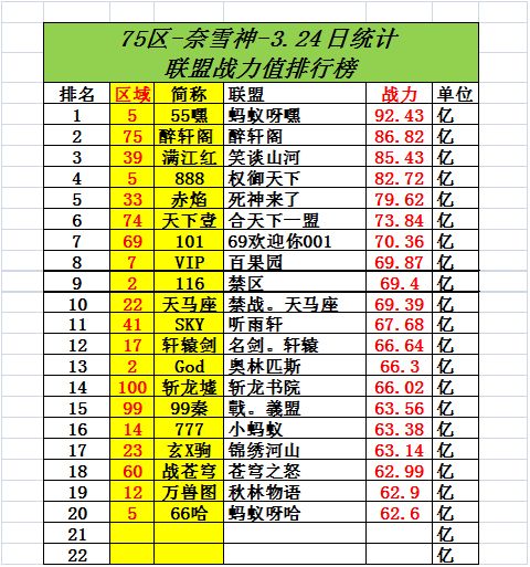2-100区,联盟战力值排行榜3.24版