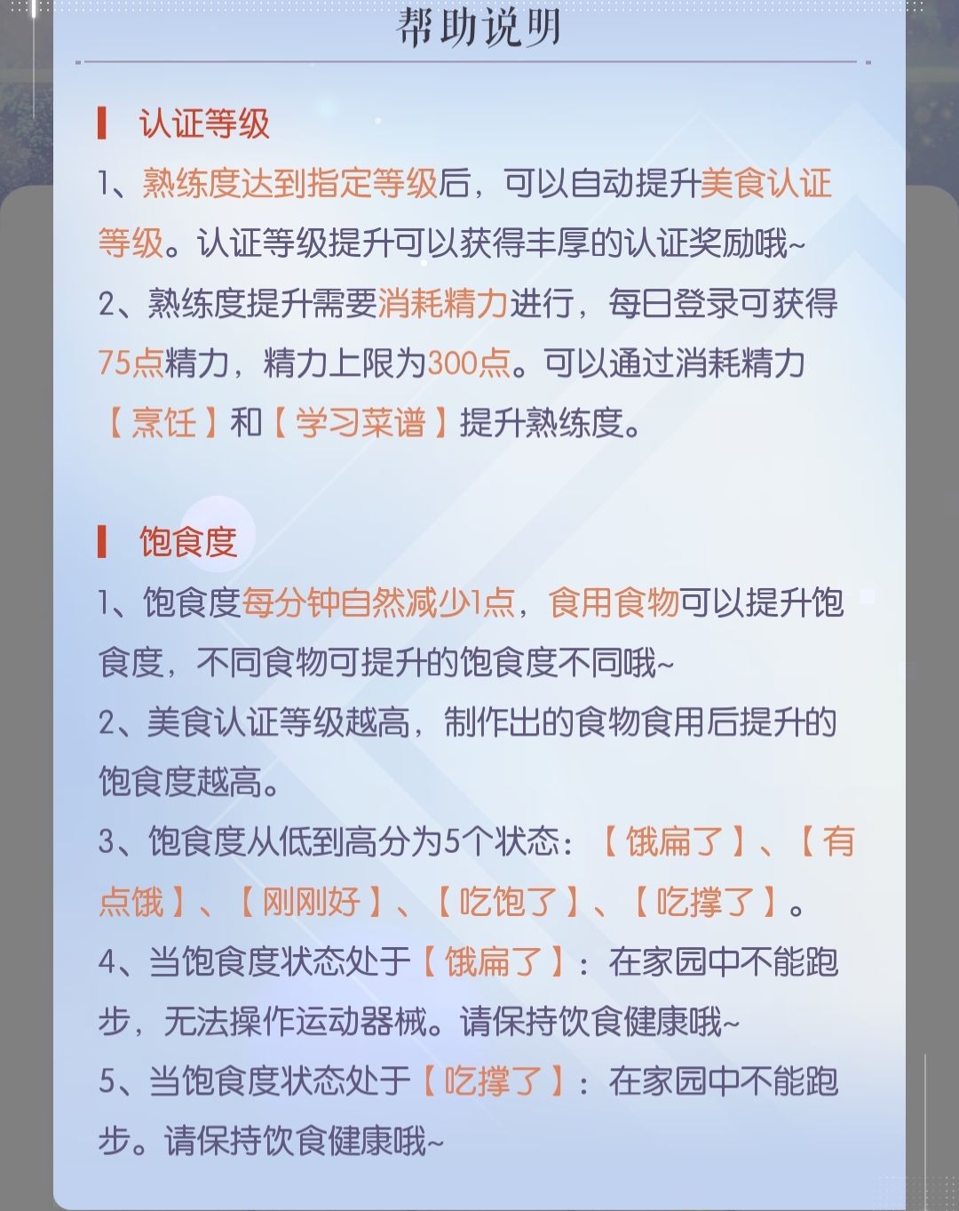 1点精力=1点厨艺熟练度