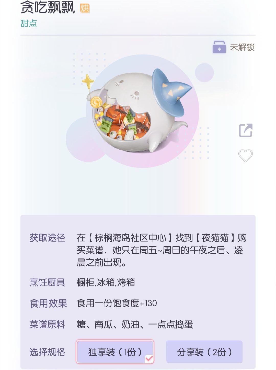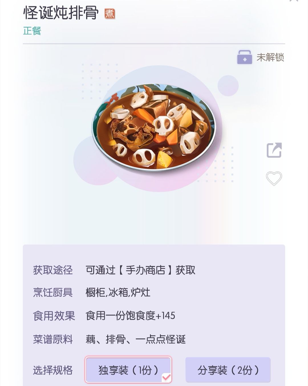 做饭建议优先做 分享装,分享装 有两份饭,每天有20次做饭次数,分享装 只计算做一次饭。一天就可以做出40份饭啦。