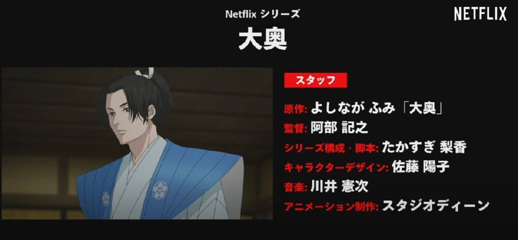 今日(3月25日),网飞宣布吉永史原作漫画《大奥》将推出动画版,预计将在2023年夏季推出,《幽游白书》动画导演阿部记之负责指导,宫野真守、松井惠理子、梶裕贵、关智一等声优将出演本作。