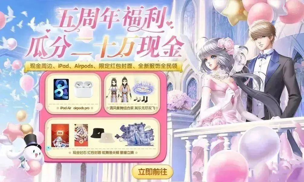 炫舞五周年庆典现已开启,快一起来福利集合站,一站式参加千人婚礼,瓜分二十万红包,赢iPad Air、AirPods Pro,把臻品美衣带回家!