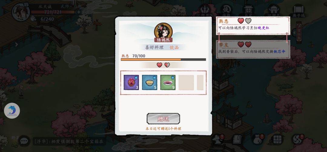 Piapiapia的打完燕子坞后,找到名叫”陆嫣然“的NPC(找不到就是剧情没过完)提升友情给她灌酒。交易配方里就有晚更红啦🥳
