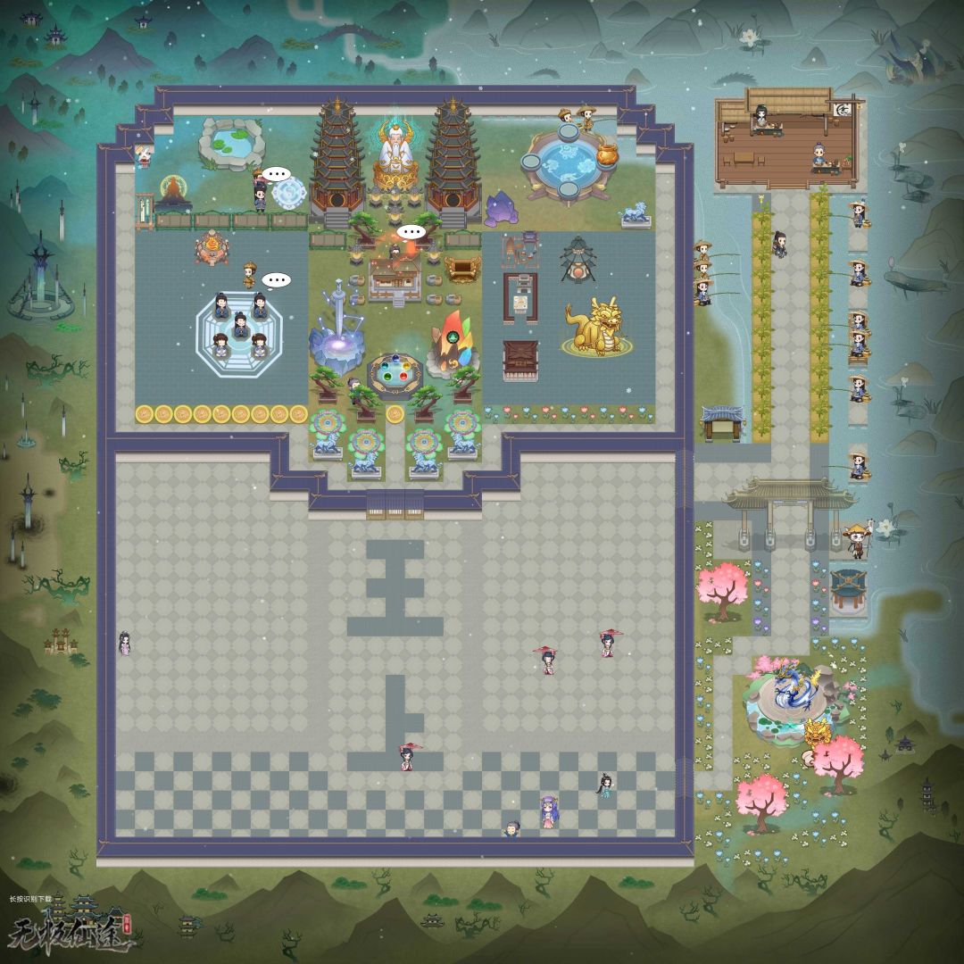 7、下方大广场可自由DlY。后期放啥都行,前期放风水建筑可能影响上方区域增益。