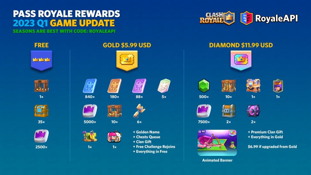 如果你看过之前的帖子,相信肯定已经了解一些更新的内容了:皇室令牌2.0,赛季币和活动2.0【之前好像直接就翻成“挑战”,总之就是这方面的改动】。