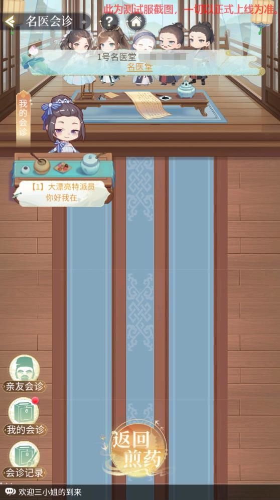 开设保安药堂的玩家可制作仙药然后【开设会诊】,招揽其他玩家来参与会诊,可获得【玉算盘】