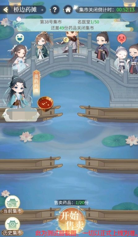 每场集市有开启时间,药摊达到上限或集市倒计时结束或活动结束时百姓将进行评选。