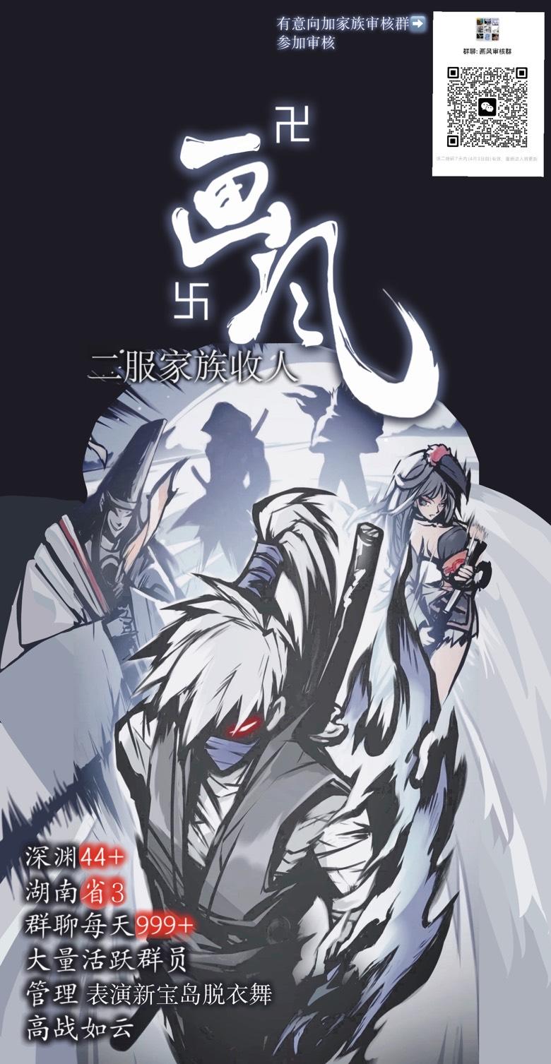 二区家族招人,深渊44,湖南省3,群聊每天999+,大量活跃群员,管理表演新宝岛脱衣舞,高战如云。族战胜利更有大量福利,打擂活动等家族内部活动丰富,有意向的加图中微信群,参加审核。