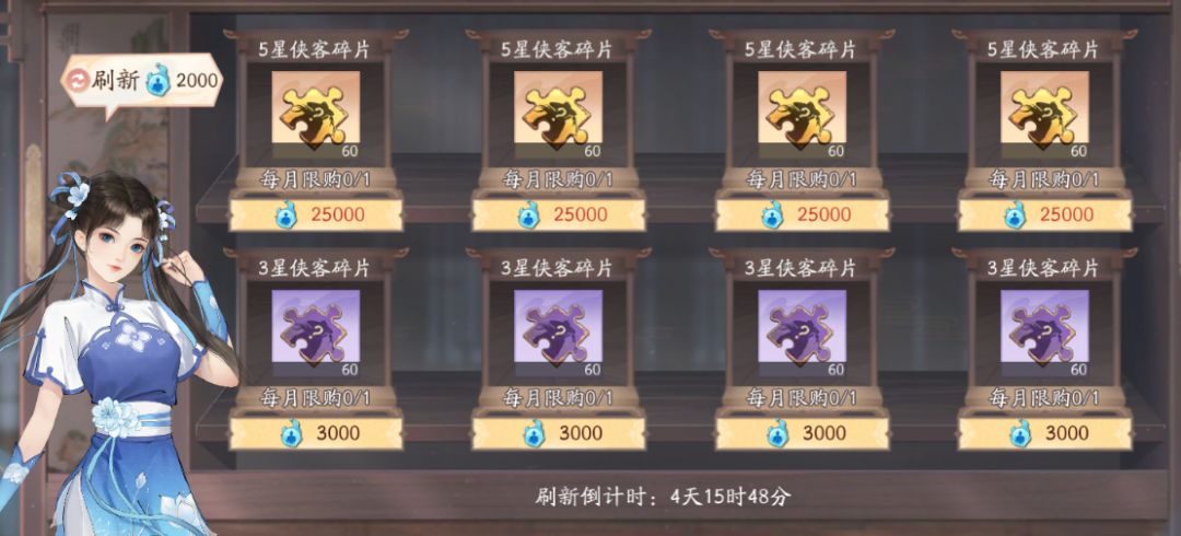 紫色品质的侠客,目前最高可以升至8星,游戏初期算是不错的选择,可以升星拉一波先用着。