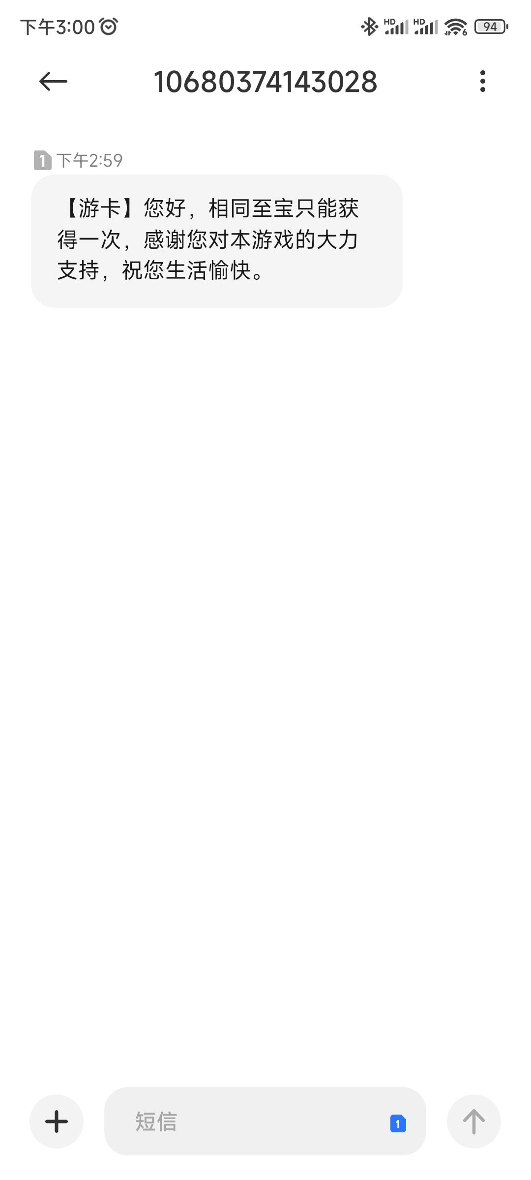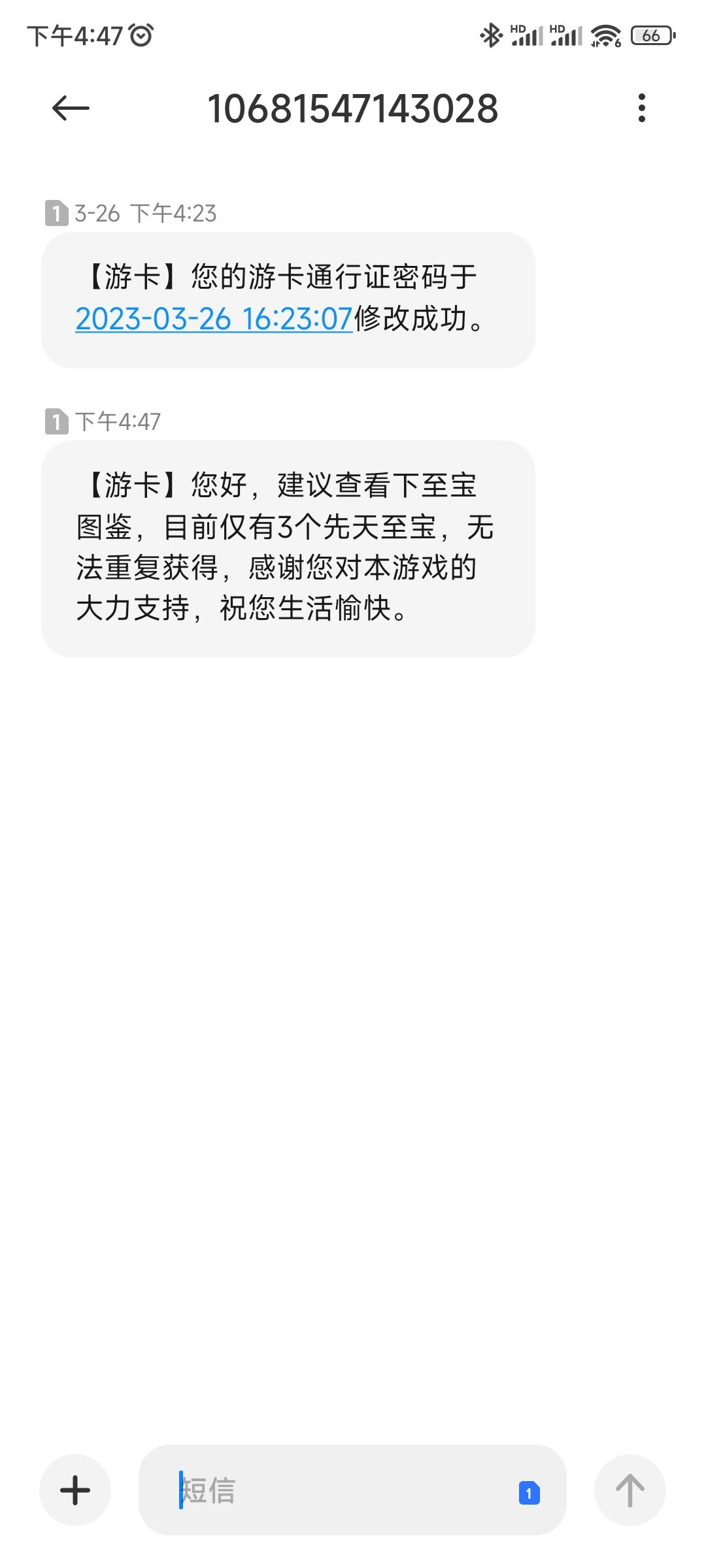 当日反馈给游戏客服后,今日收到短信回复只有一句话,先天至宝不可重复获取。那么我的补偿呢?我确实抽到了两个先天至宝,这也是符合活动规则的。