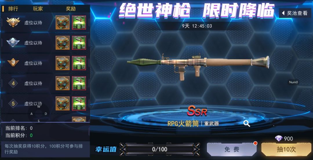 活动内容:每天登陆可免费抽奖一次,每消耗900钻石可进行十连抽一次,每次抽卡可获得10积分,达到100积分可参与排行奖励。