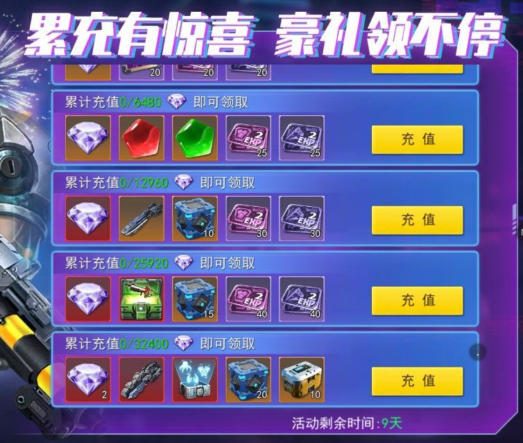 注释:战令、直购礼包不计入累计充值。