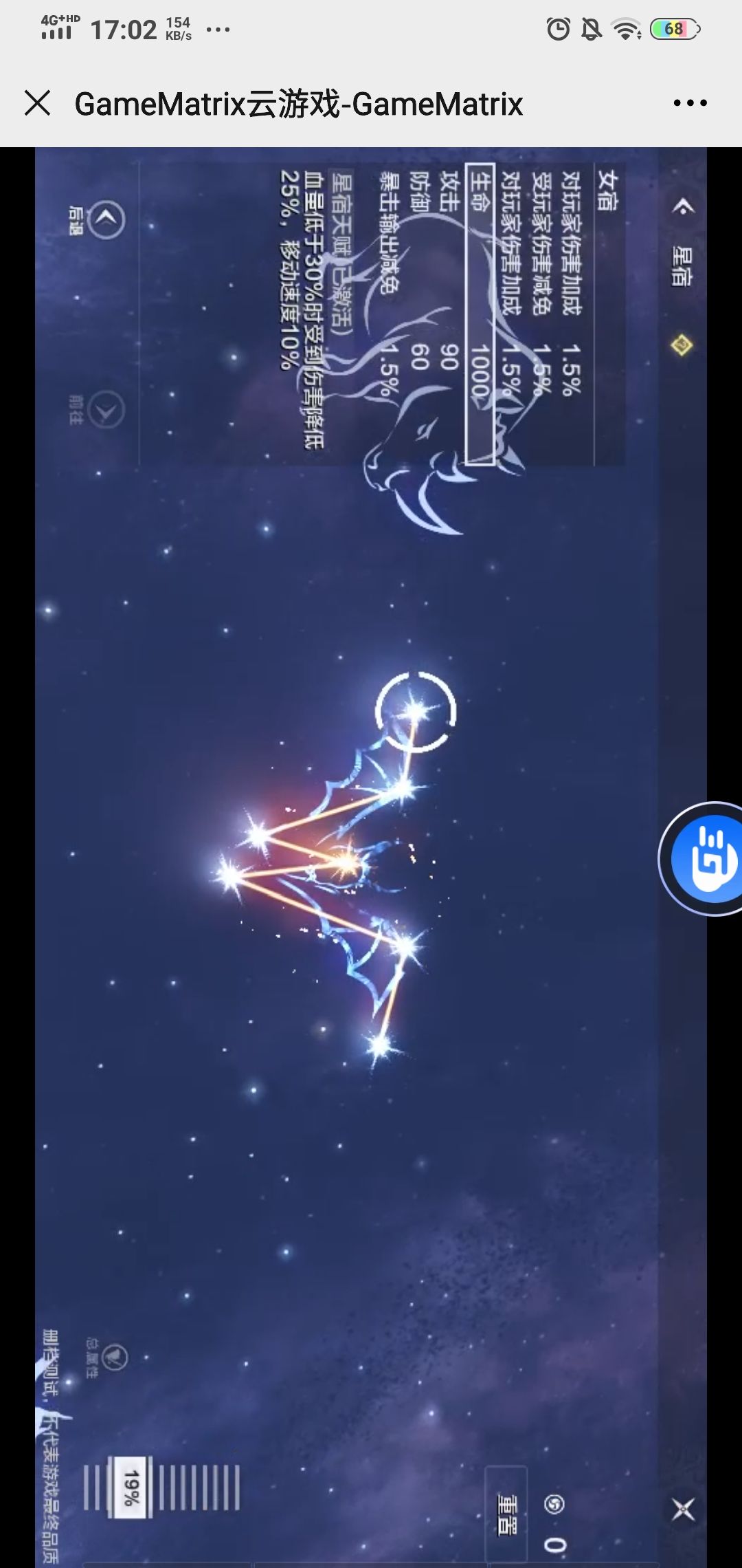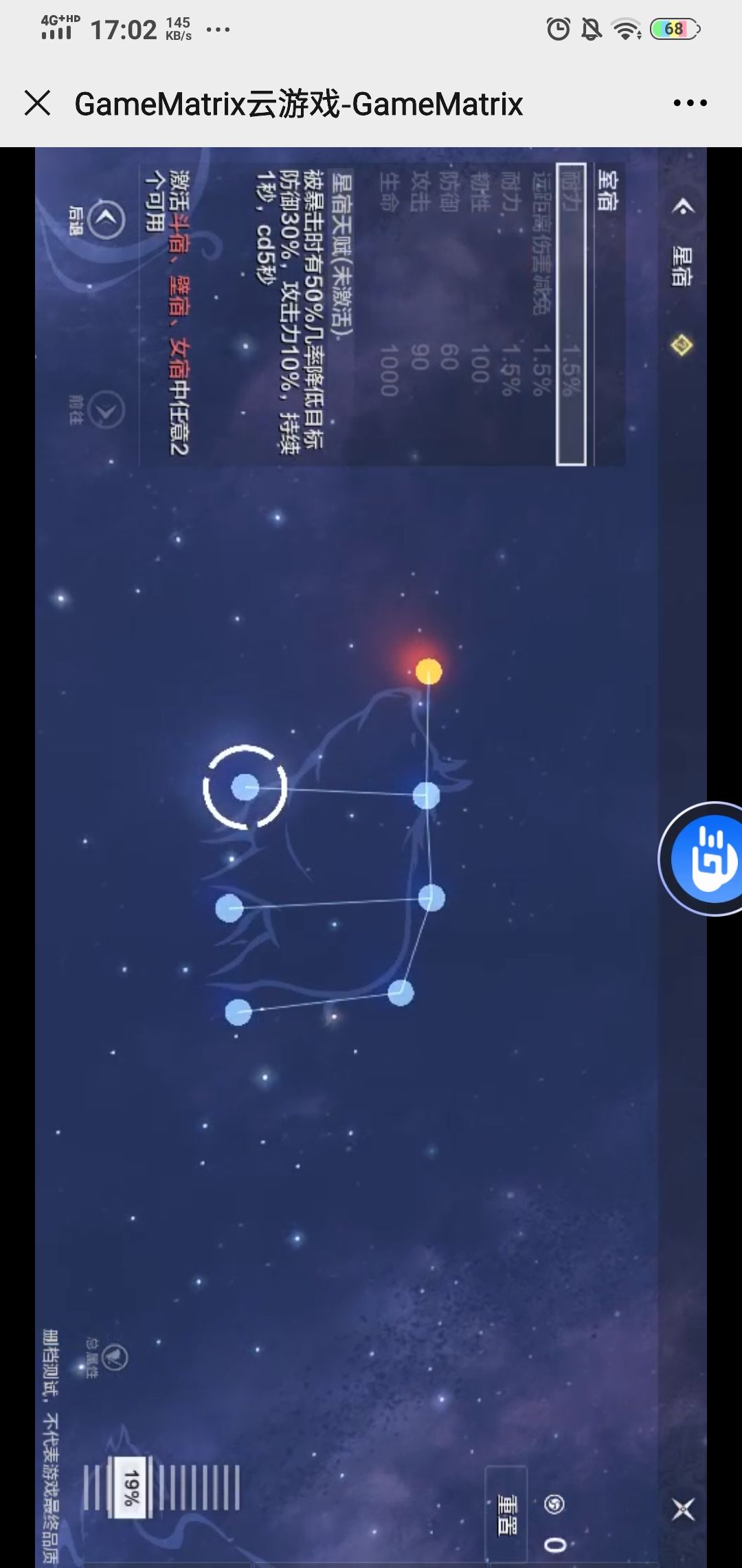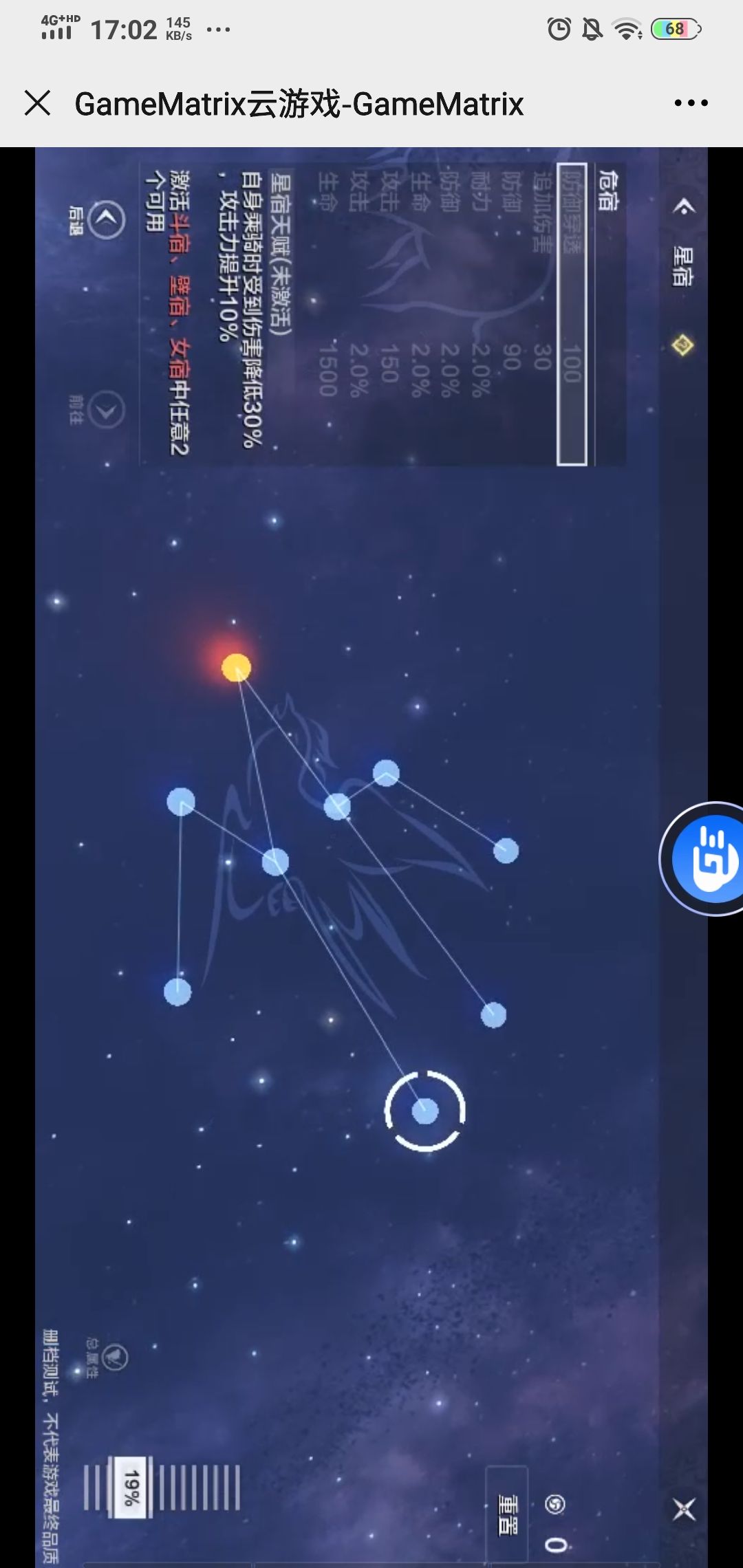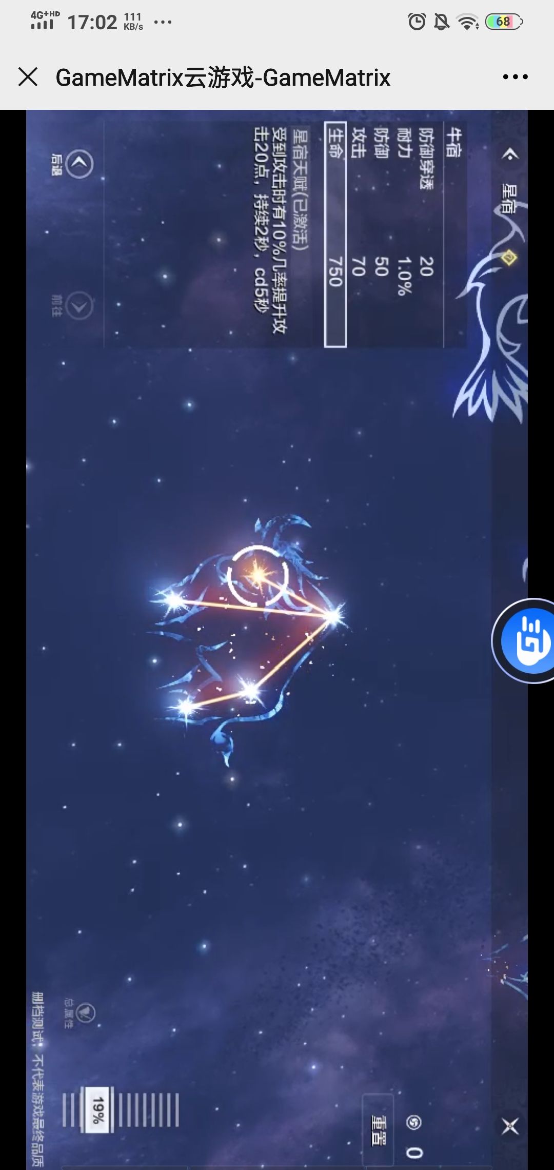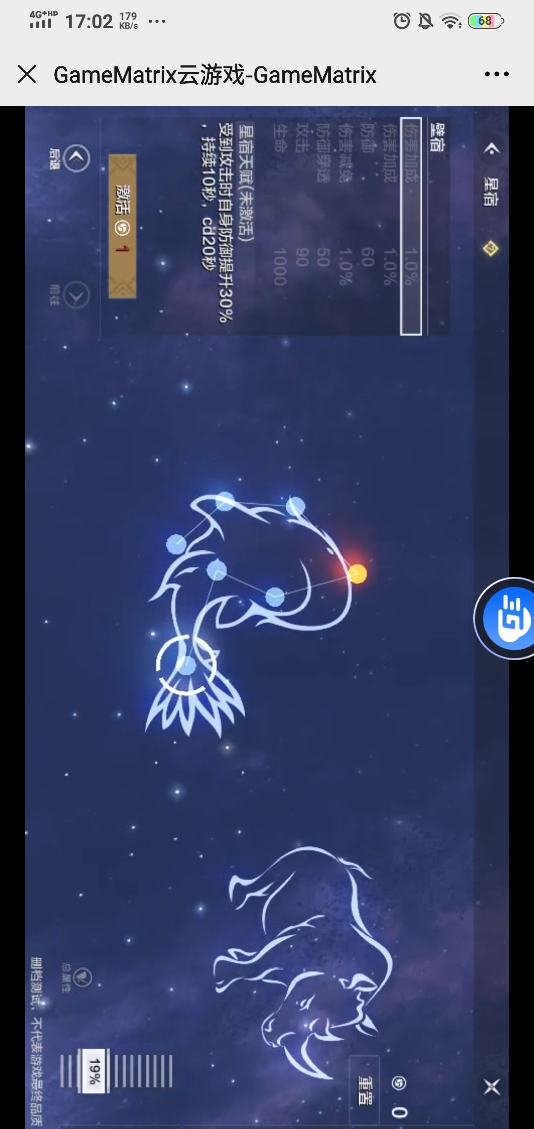 全称斗金牛,玄武七宿第二宿,游戏中位于首位。这一个激活前期还算是比较有用的。但是后期就显乏力,一般情况下这种固定数值而不是百分比的,在游戏后期中的存在感特别低。不过要想激活后面的这个必须点亮。所以就先凑合吧。