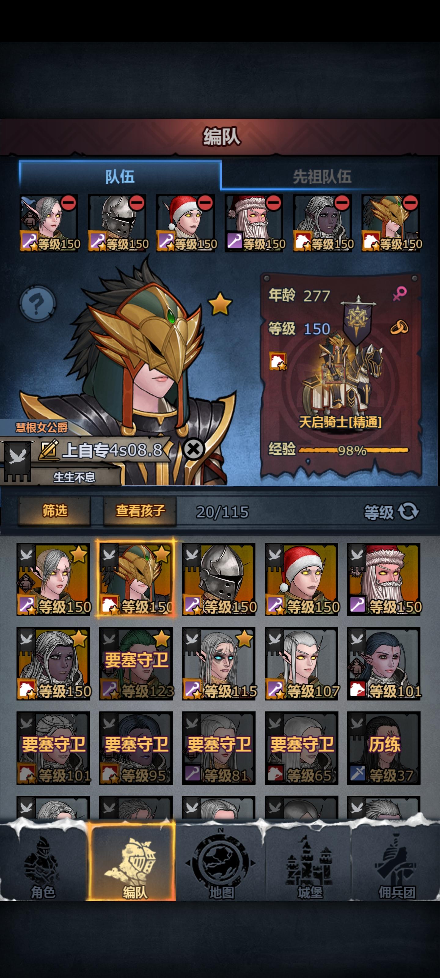 头脑一热就想搞个满级队,只看苗子成长不看苗子经验特性多不多,导致老死了四个150都还没全员150,上线连卷土都不敢打,文明也只敢打打酱油,但总算是完成了