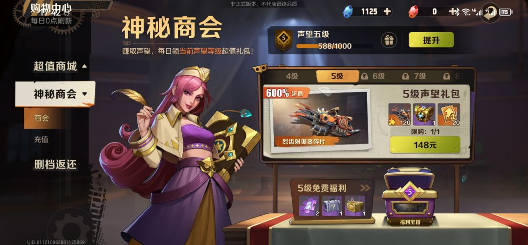 这个是我认为最值得和最贵的功能了,但是也是提升战力最快的系统,通过提升声望升级,解锁更好等级以购买更好的武器道具或者其他道具,非常值得进行购买,土豪党可以适当购买。