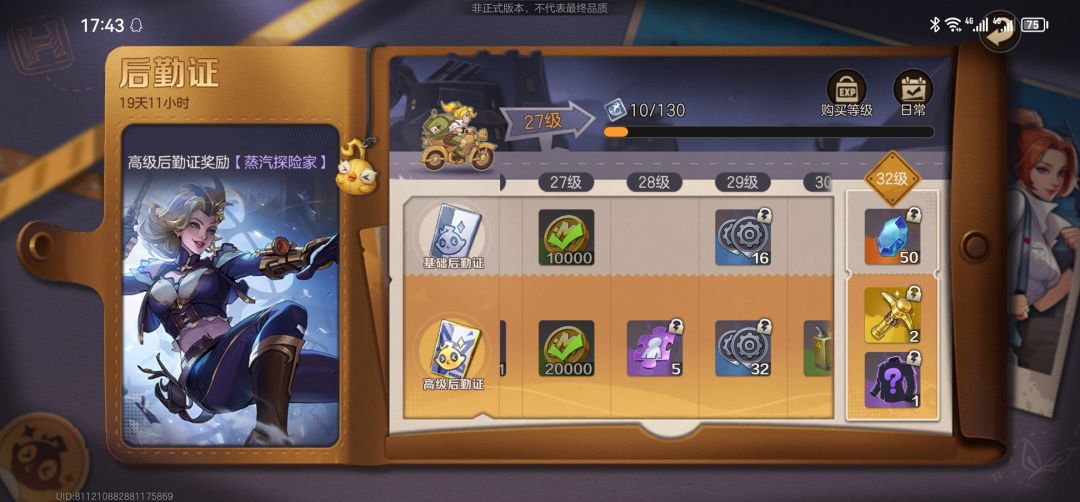 后勤证也是众多游戏必有的功能,通过提升等级获得道具,包括金币,宝石,镐头,或者装备。满级后可以获得英雄或者武器。使用宝石可以购买等级,快速解锁等级获取更多道具。