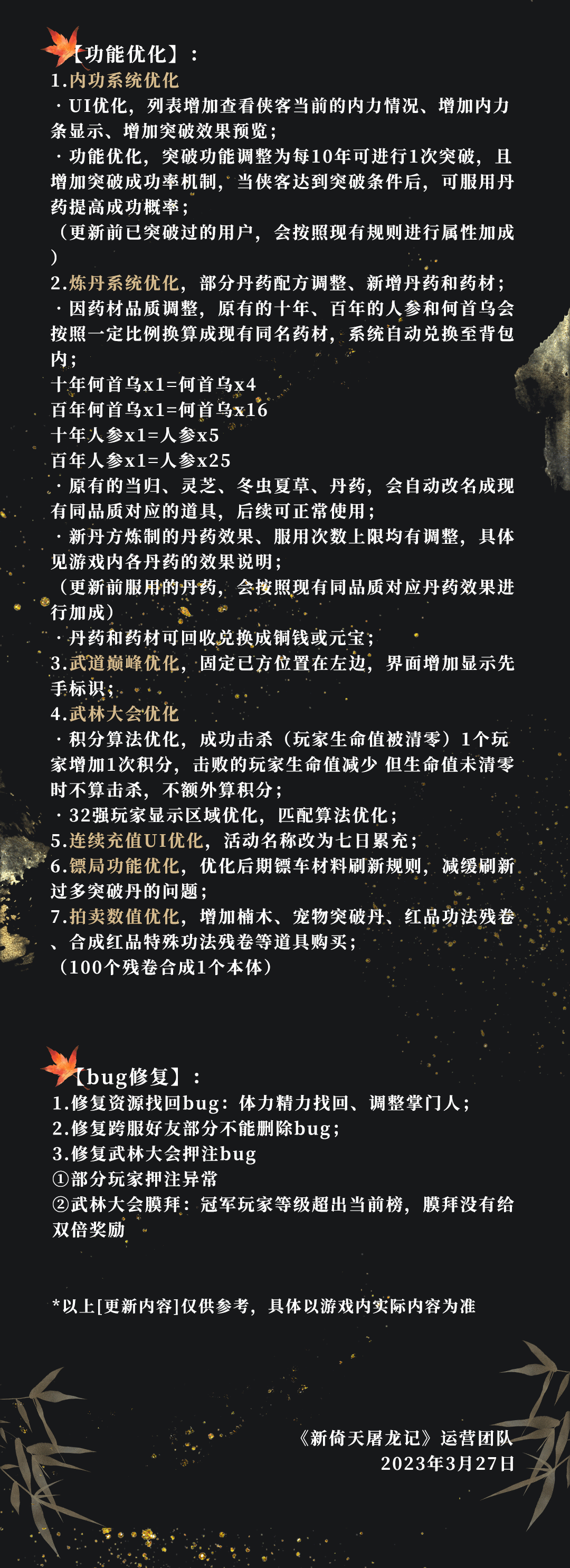 3月29日更新维护公告