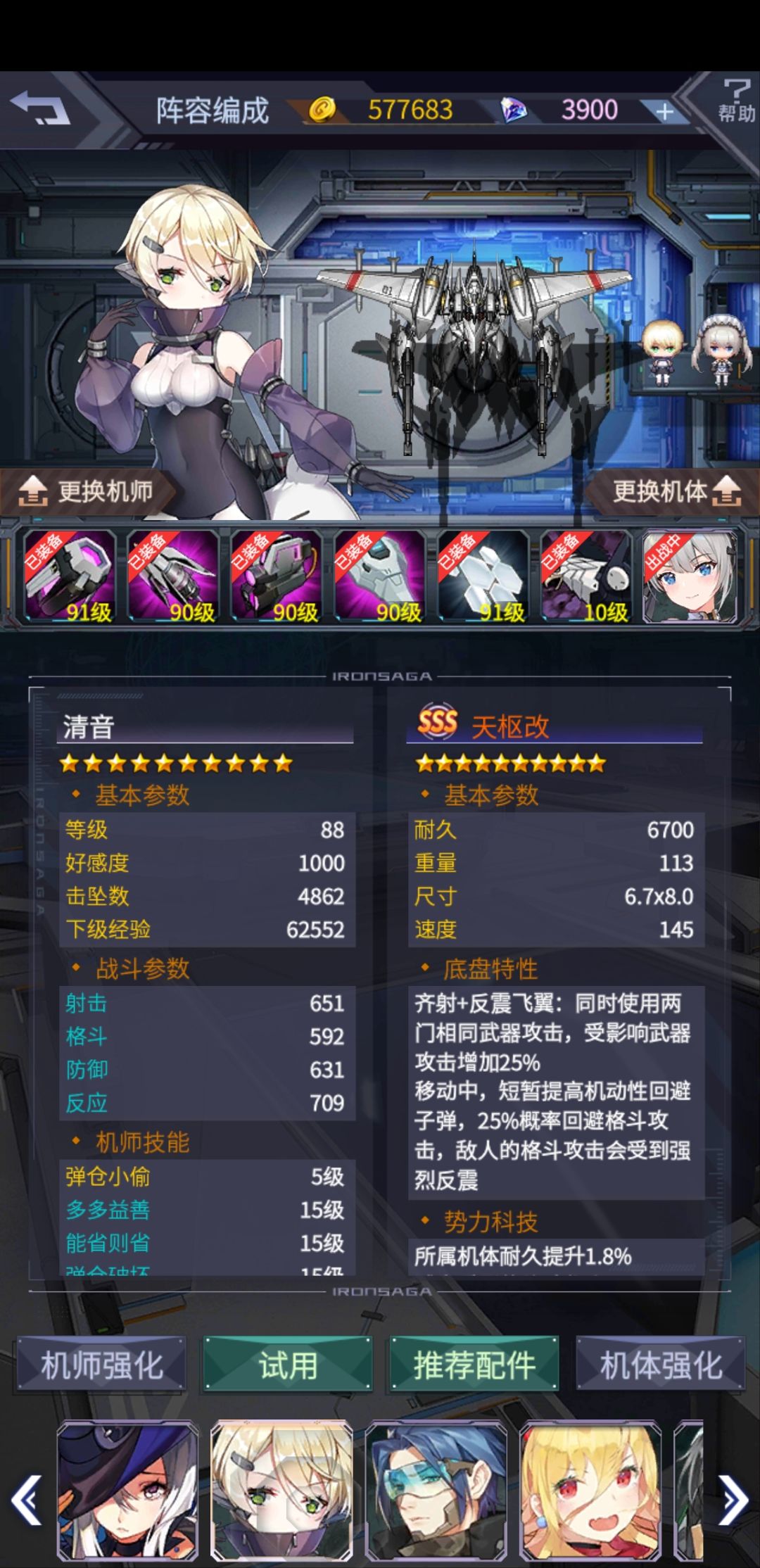 萌新抄作业的佣兵队,神久夜t不住😂打布伦希维尔和黑龙都暴毙,而且输出c总觉得差了点意思是配件不对吗(没啥机子),求大佬指教。