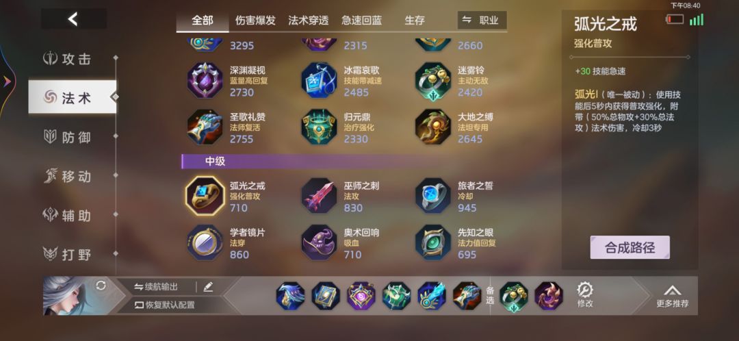 第二件弧光之戒,,如果对面法师伤害高,可以先做小吸血