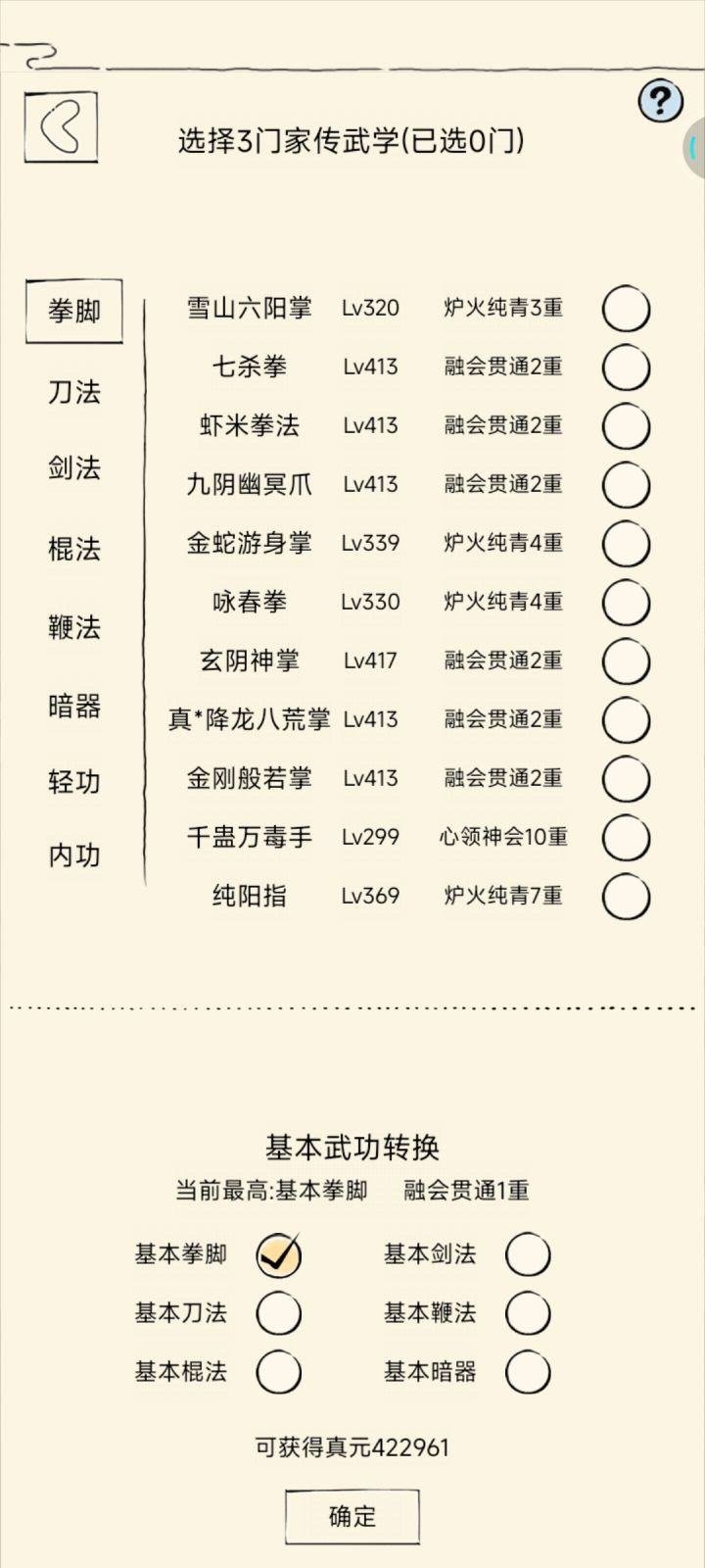 先去血刀,因为血刀内功需要散掉,越早越省,而且血刀轻功可以反击,早拿早用。逍遥和太极两个门派,出师内功都能用九阳,省下一大笔潜能。先500级基础拳,好嫖门派,太极嫖完后去雪山就可以换武器了,想玩什么都随便了,反正能拿到的都拿到了,轮回的时候推荐把最高的基础转换成拳,毕竟拳的绝学多,真元多。500拳,400剑轻内,300刀、棍、暗、鞭,预计能躺百万真元。躺多少随缘吧!我也才1轮,走了不少弯路,还差5000真元,预计清明的时候跑路!小蓉儿,下下辈子还娶你