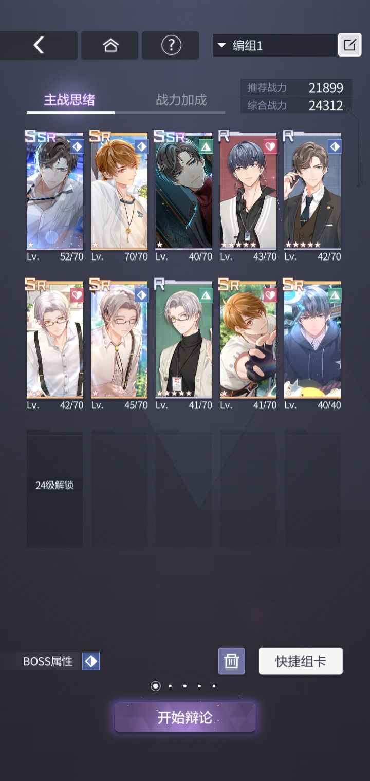 在辩论前 你可以看到boss属性 快捷组卡(点击后,可以选择最强组合)