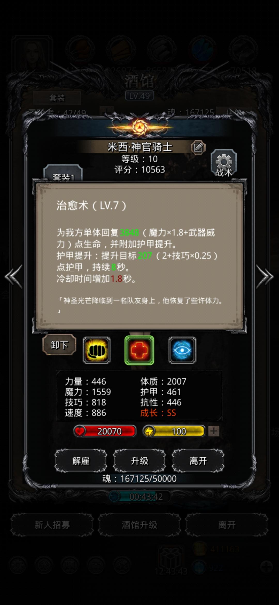 操作没问题大概3分钟左右左手打成治疗状态,然后3-5分钟这段时间是没压力的,挂机就可以打,不过其实建议不要挂机,手动让神官找一找加血和嘲讽的节奏,5分钟一般节奏是自己两下,残血火法/诡术一下