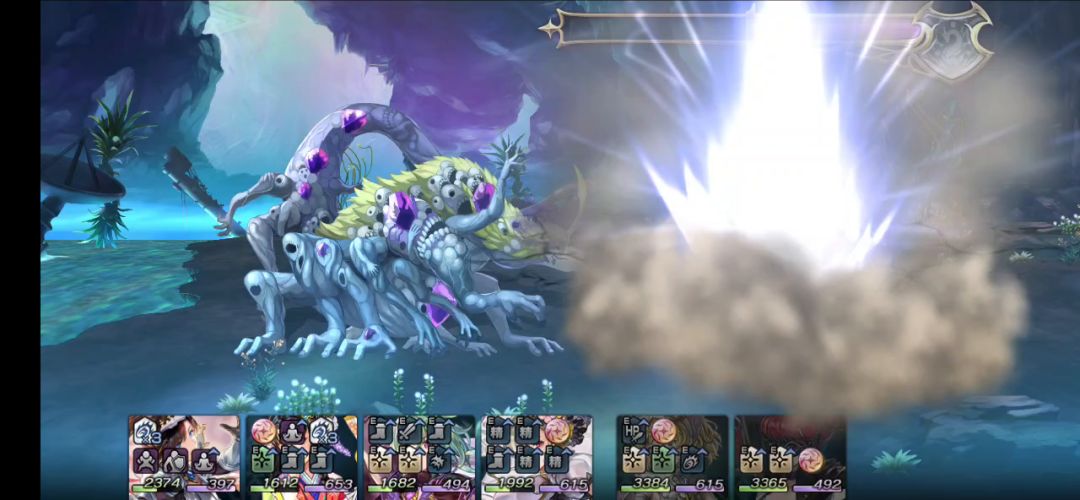 回合末:处于辉晶阵时根据队伍中的晶属性攻击次数: