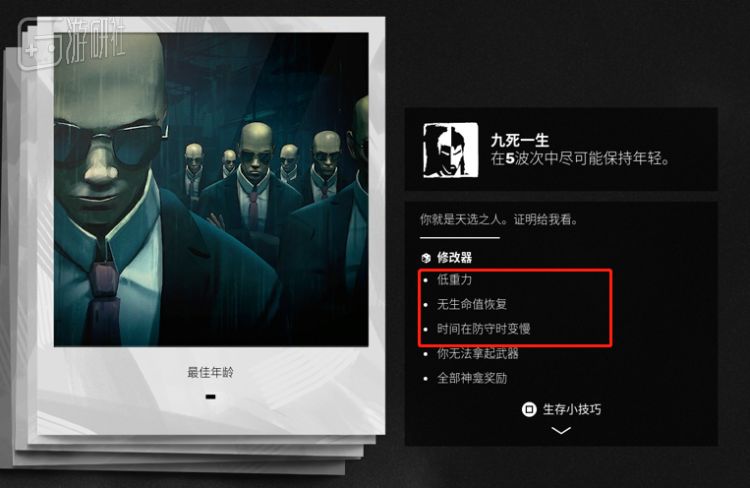 这关的挑战任务在“尽可能保持年轻”的基础下,也应景的加入了“低重力”、“防守时触发子弹时间”这样非常有黑客帝国味道的设定: