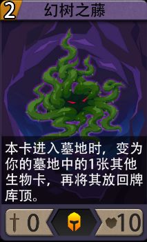 ※幻树之藤:特殊生物卡,2费0攻10血,本卡进入墓地时,变为你的墓地中的1张其他生物卡,再放回牌库顶。