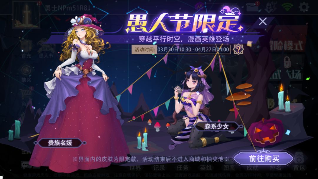 1、新增“愚人节限定皮肤”:“贵族名媛”和“森系少女”,可在活动界面中进行购买;
