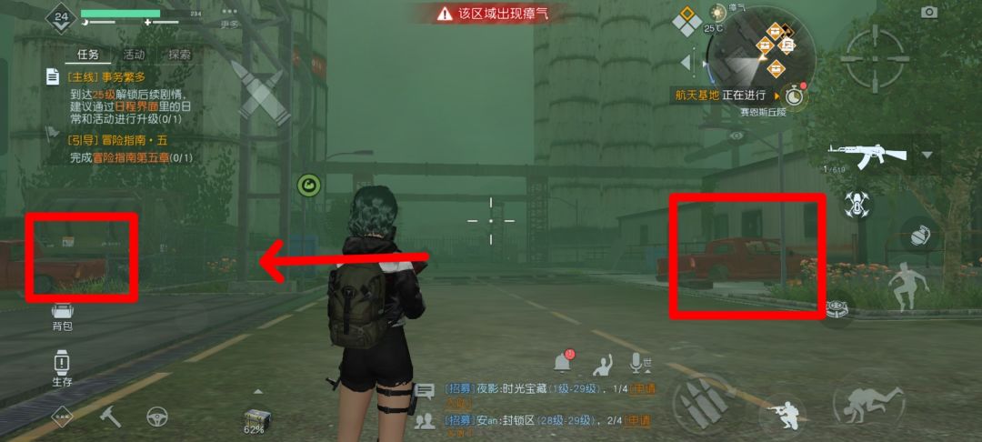 首先来到西部哨所,顺着地图上的公路一直开,看到两个红色的车厢,走到离左边车厢比较近的位置,对准右边的车厢