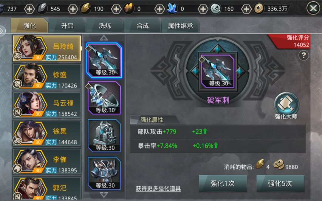 第四天:存的体力丹吃了,带上你充沛的体力去副本里挥霍,消费,把武将升星的材料都打出来,这一天武将升星材料双倍!我自己在这天刷了130个体力丹外加第三天时候攒的138体力。不过我这里出现了比较尴尬的局面,是,主队武将总星数从32升到55,二队也升了20星左右,提升非常非常大,我也是靠这个逆袭了我们区大佬的小号,(他小号最少都是v6,毕竟有关羽,我只是买了点体力礼包,侥幸升到v5刚出头)尴尬的在哪呢,在于我3级融合石副本次数被刷完了,所以被迫刷2队升星,然后刷其余所需材料,不过双倍升星材料,怎么都是赚,格局打开。
