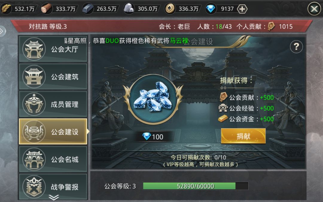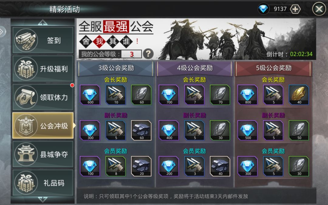 升的快的,抓紧建个帮会拉人,帮会每天贡献拉满。然后,利用仅有的帮会资金建一个公会要塞出来,要塞有个攻城周边疲劳值,简单来说就是,要打的城离要塞越远,疲劳值越高,对部队越不利。然后资金可以用来升科技,里面有个增加县城占领上限的,升一级,第二天就能占两个城了。