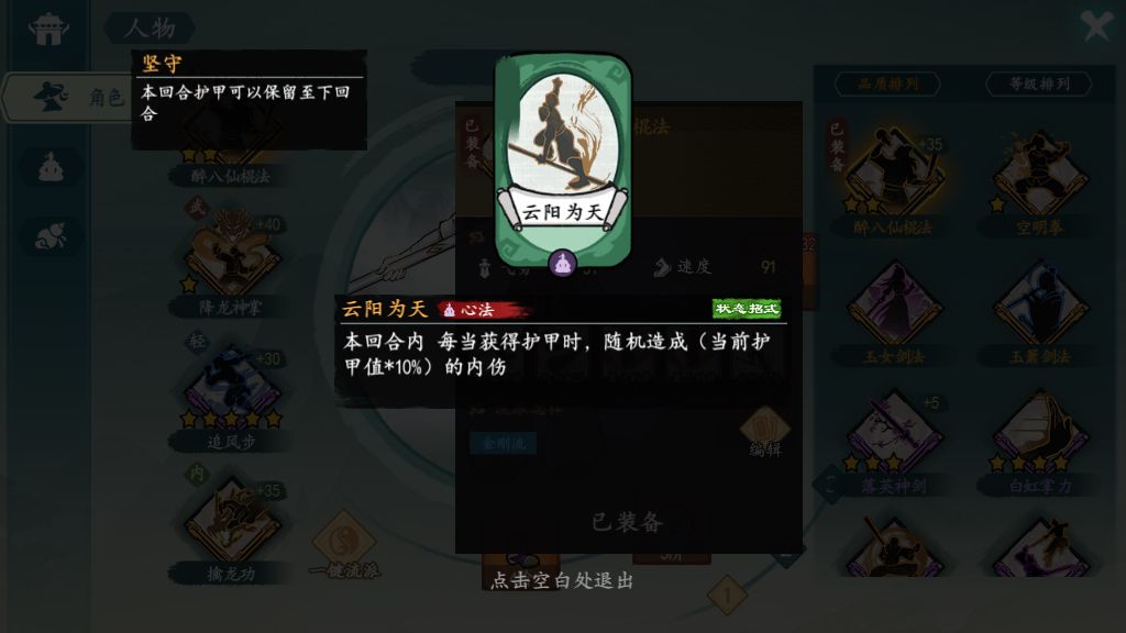 ’推荐:利用醉八仙棍法慢慢叠加盾,然后盾击秒(云阳为天可以稍微加快进程)
