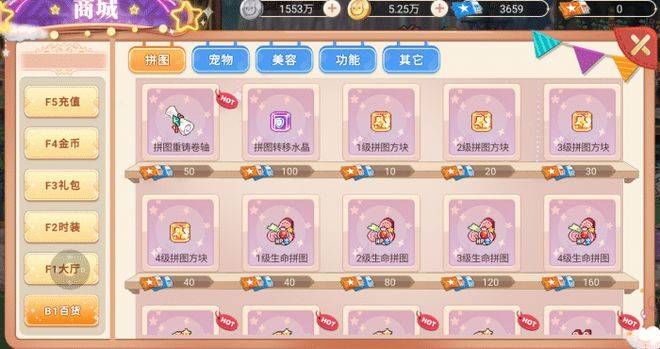 拼图系统共分为四个等级:(1级拼图1-5级、2级拼图6-10、3级拼图11-15、4级拼图16-20),分为13个属性(生命、双攻、双防、暴击、暴伤、命中、闪避、无视双防、暴抗和暴伤抗)拼图获取方式:商城和技能制造。