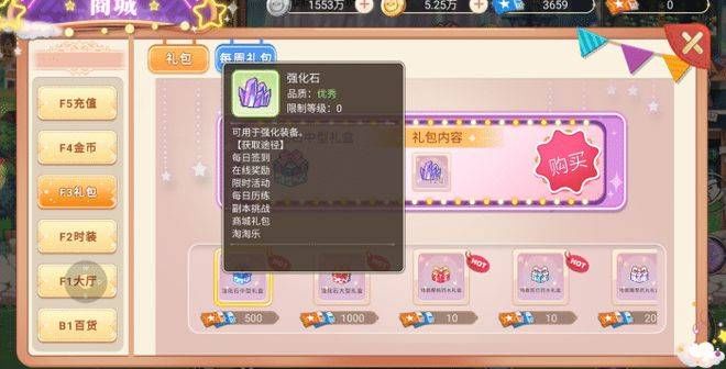 宝石系统前期玩家必选系统,这个系统没有以上系统换装备丢了强化等级,因为宝石是镶嵌在装备栏里的不会因为装备变化而变化!宝石我们可以在商城里金币获取,还有在线奖励,怪物手册,每日礼包,首充,均可获得!