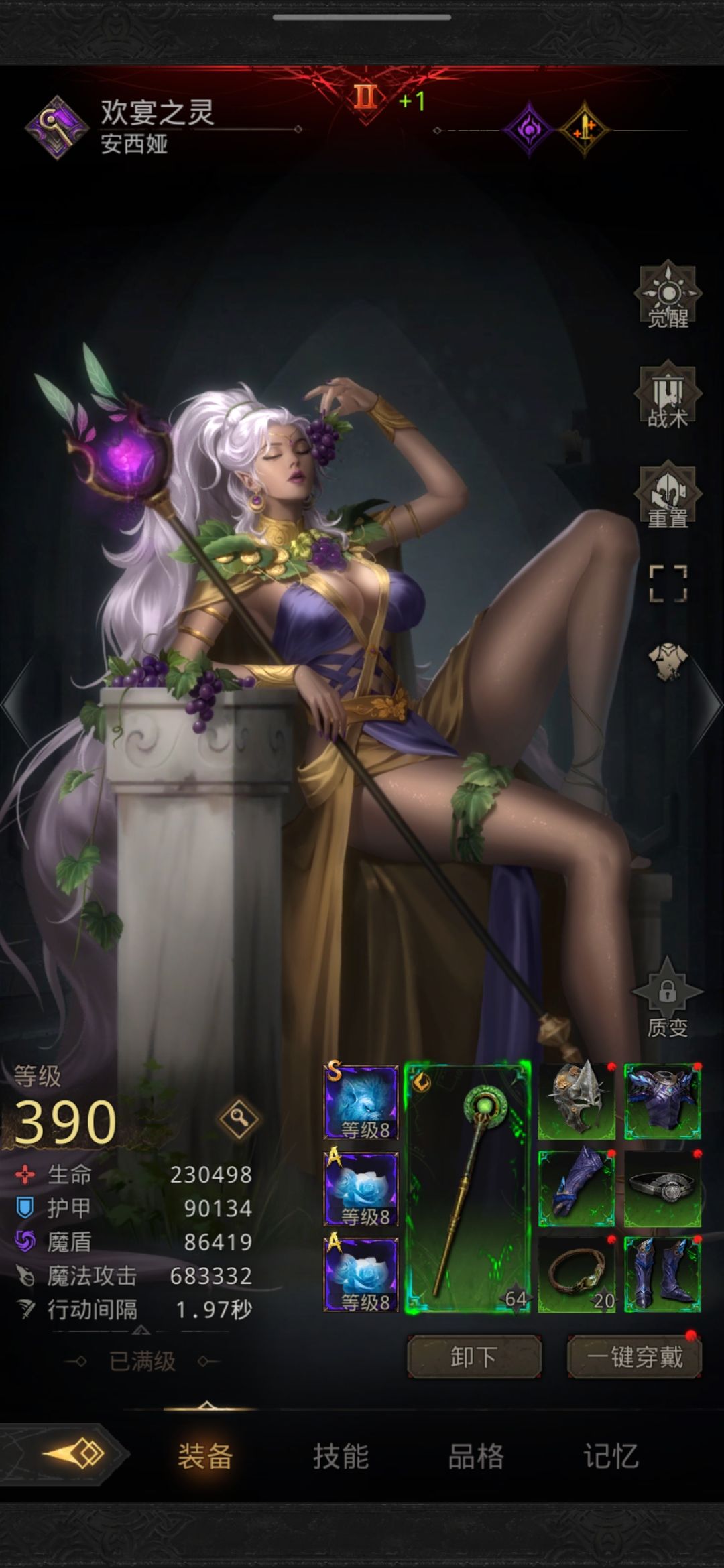 面板85+68极光欢宴,龙人拉的链子,战争35w,需求武器为陨星蛇弓。