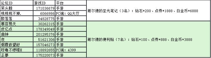 谢尔德的便利贴(7名):钻石*100、点券*888、白金币*3888